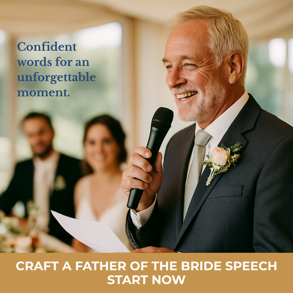 ✨ Write a proud, heartfelt Father of the Bride speech in minutes — with no stress, no writer’s block, and no second-guessing.